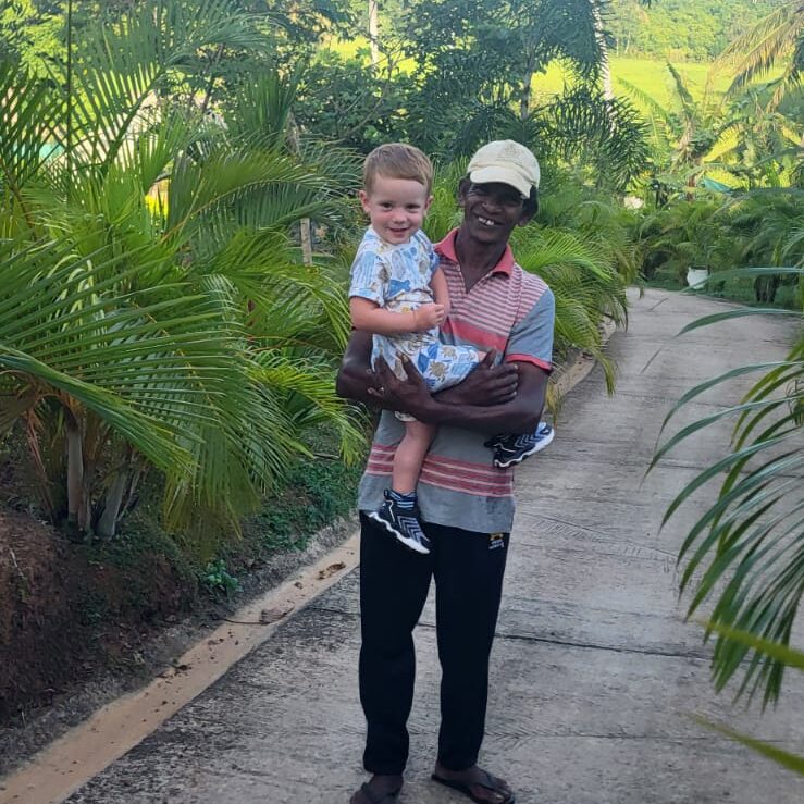 In this picture, young Arlo is experiencing a true Sri Lankan lifestyle and education—not just learning where bananas come from, but also discovering how birds and other animals use the growing fruit and surrounding leaves to build their nests.