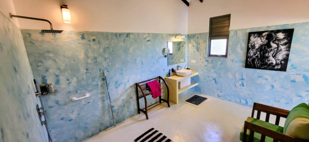 The Island Bedroom an adults only room, earned its name from its unusual beginning: when the builder was asked to place the concrete-based bed in the centre of the room, he found the request so curious and different that he jokingly called it “the island.” The name stayed — and today, it’s everyone’s favourite room, spoken of fondly by guests and, of course, by the builder himself.