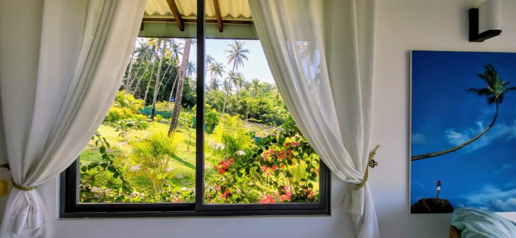 Wake each morning in a bright, airy bedroom with sweeping views that transform throughout the day. Soft white curtains billow gently in the warm breeze, filling the room with a sense of effortless calm.