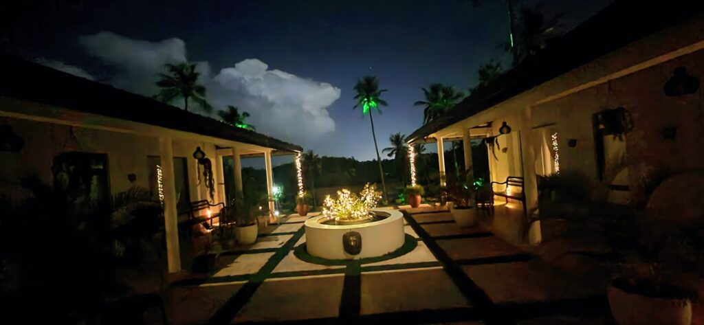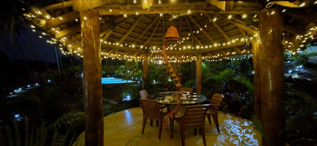 At the villa, every evening offers a unique experience—where the magic of nature, the beauty of the surroundings, and the serenity of the villa come together to create an unforgettable escape. Whether you’re marvelling at the lightning as it dances across the sky or simply savouring the glow of fairy lights and lush greenery in the courtyard, you’ll find that here, magic is a part of every moment.