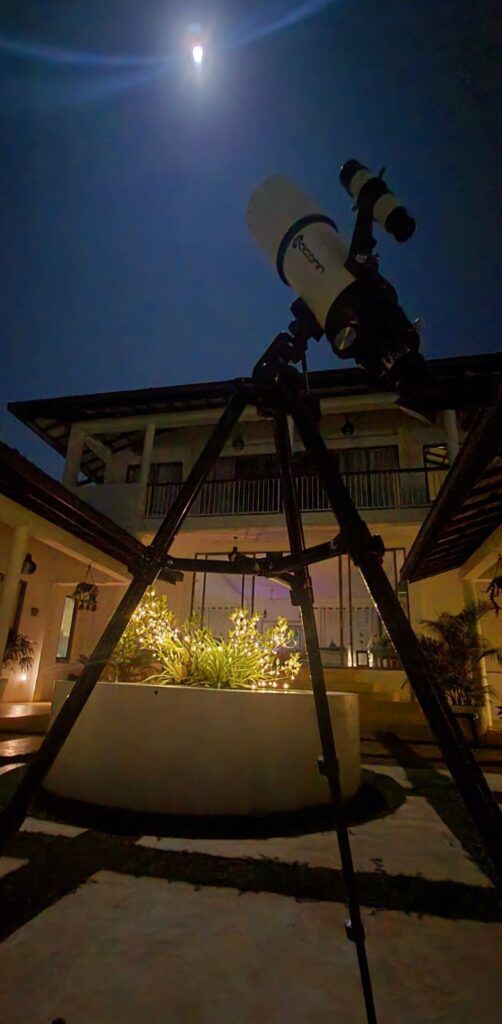 For those with a passion for stargazing, we offer a telescope to explore the night sky. Or, you may simply relax on the veranda, where a soft breeze stirs the air, accompanied by the rhythmic hum of crickets as the world gently slows down.